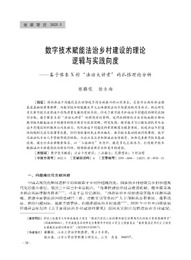肯定数字技术是促进乡村高质量发展的有效手段,但关于数字技术和法治乡村建设的研究还相