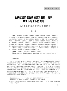 持,破解公共数据价值开发过程的生态性功能不足难题,将一次性的数据供给和交易理念转变