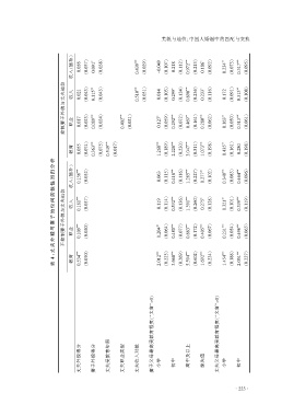 4:丈 夫 外 貌 与 妻 子 地 位 间 的 线 性 回 归 分 析 不控制妻子外貌与丈夫地位 收入 职业 0.181 *** 0.109 *** (0.037) (0.020) 0.119 0.204 ** (0.114) (0.064) 0.532 *** 0.480 *** (0.136) (0.077) 1.391 *** 0.863 *** (0.260) (0.172) 0.275 * 0.405 *** (0.128) (0.067) 0.321 ** 0.231 *** (0.101) (0.054) 0.539 *** 0.496 *** (0.119) (0.065)
