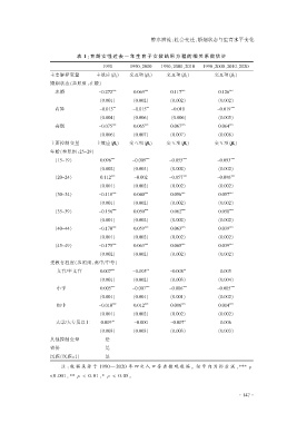 表 1:育 龄 女 性 过 去 一 年 生 育 子 女 数 结 果 方 程 的 相 关 系 数 估 计