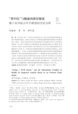 关键词:健康的教育梯度 自评健康 “看中医” 有序链式中介模型