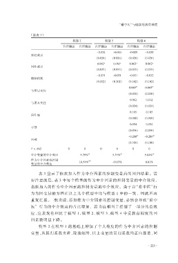 应,这表现在相比于模型 1,模型 2、模型 3、模型 4 中受教育程度的回