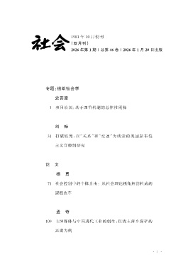 1981 年 10 月创刊 (双月刊) 2026 年第 1 期 | 总第 46 卷 | 2026 年 1 月 20 日出版 专题:组织社会学 史普原 1 项目治国:基于四重机制的总体性阐释 刘 畅 31 打破铁笼:以“关系”和“变通”为线索的美国新韦伯 主义官僚制研究 论 文 杨 勇 71 社会控制中的个体自由: 从社会理论视角解读杜威的 课程改革 孟 奇 109 士绅群体与中国现代工业的创生:以清末萍乡煤矿的 兴建为例 ·ⅰ·