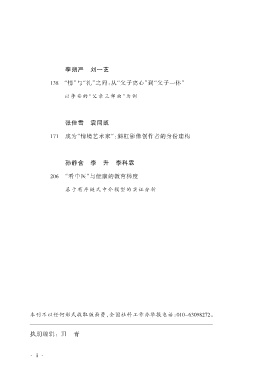 李朔严 刘一艺 138 “情”与“礼”之间:从“父子离心”到“父子一体” 以 李 安 的 “父 亲 三 部 曲 ”为 例 张佳雪 袁同凯 171 成为“情境艺术家”:斜杠影像创作者的身份建构 孙静含 李 升 李科霖 206 “看中医”与健康的教育梯度 基 于 有 序 链 式 中 介 模 型 的 实 证 分 析 本刊不以任何形式收取版面费,全国社科工作办举报电话:010-63098272。 执期编辑: 田 青 ·ⅱ·